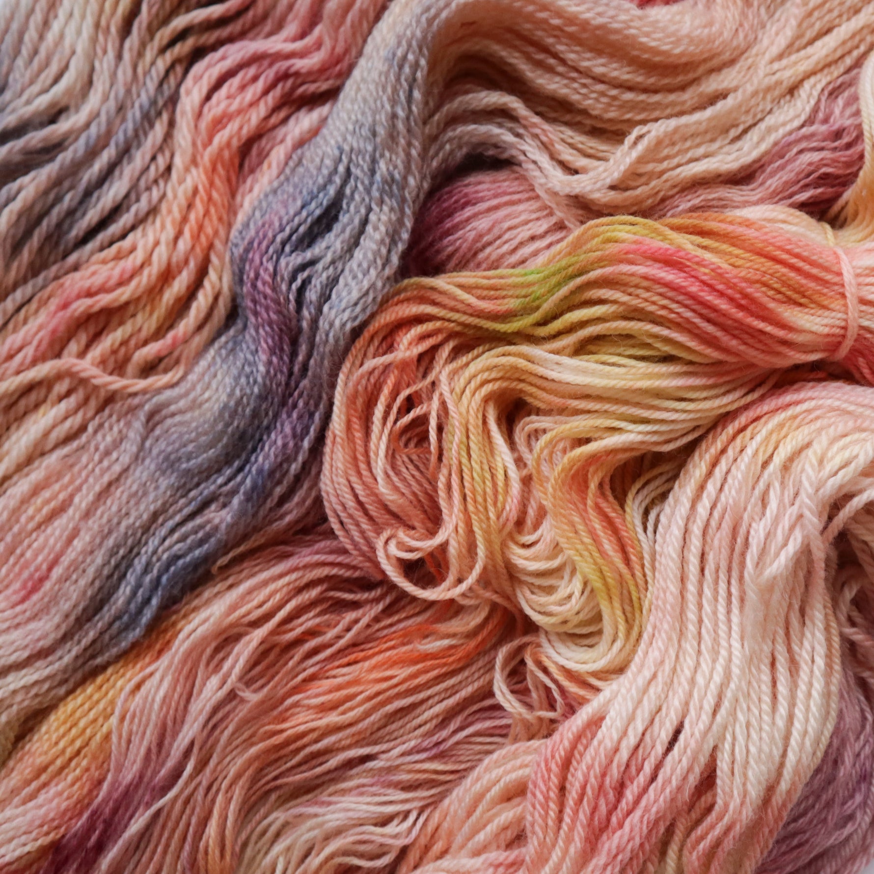 This colorway is the brightest of the bunch, and it’s such a happy colorway that it always puts me in a good mood when I dye it up! Inspired by beautiful Japanese azaleas, these happy pinks, oranges, and purples definitely are the epitome of spring. I created this colorway to give off the “fresh springtime flower garden” vibe, and I think it really hits the nail on the head if I do say so myself 😗👌🏼.