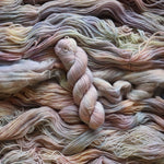 All skeins are carefully dyed with acid dye, washed and rinsed, however some bleeding may still occur. Each skein is unique and therefore colors may vary slightly from one to the next. Due to differences between monitors and screens, actual colors may also vary from what is shown. I recommend handwashing in cool water. Listing is for one skein only!