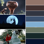 Introducing E.T.👽! I wanted to focus particularly on the famous bicycle scene 🚲 (bc who wasn’t a kid who wished that they had an alien friend that they can bike through the sky with). This colorway features swathes of nighttime blues and moonlight cool grey with mixes of warm alien brown and forest green.