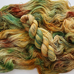 All skeins are carefully dyed with acid dye, washed and rinsed, however some bleeding may still occur. Each skein is unique and therefore colors may vary slightly from one to the next. Due to differences between monitors and screens, actual colors may also vary from what is shown. I recommend handwashing in cool water. Listing is for one skein only!