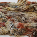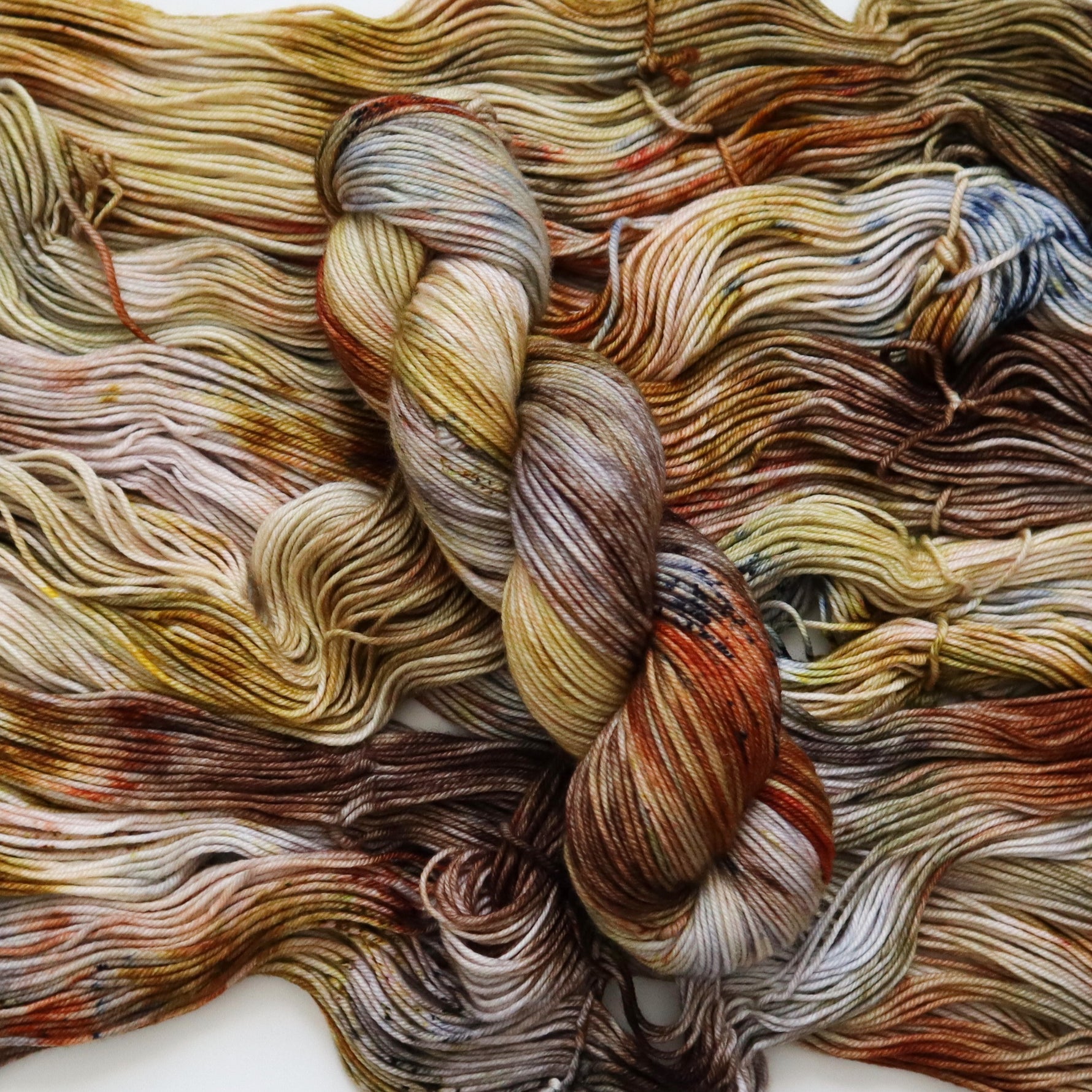 Made up of warm beige and browns with pops and speckles of dark pink, red, and blue, this colorway is named after patina, or the natural darkening or discoloration of the surface of metals, leather, and other materials from oxidation due to age and use. Patina was also part of the name of my husband and my previous business, "Oxford Patina". A very dear to me name, I hope you all love this beautiful neutral colorway as much as I do!