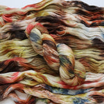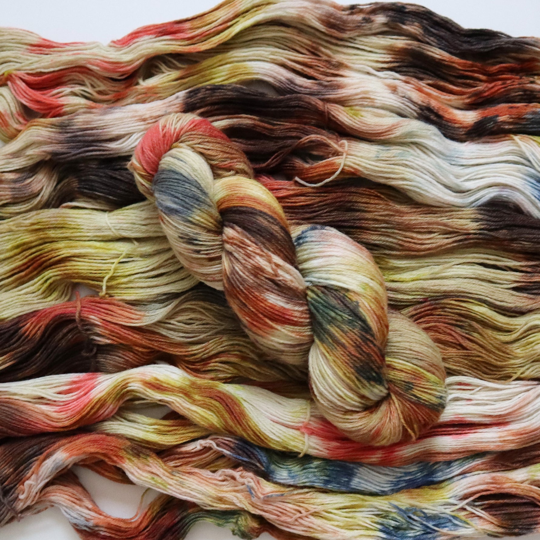 All skeins are carefully dyed with acid dye, washed and rinsed, however some bleeding may still occur. Each skein is unique and therefore colors may vary slightly from one to the next. Due to differences between monitors and screens, actual colors may also vary from what is shown. I recommend handwashing in cool water. Listing is for one skein only!