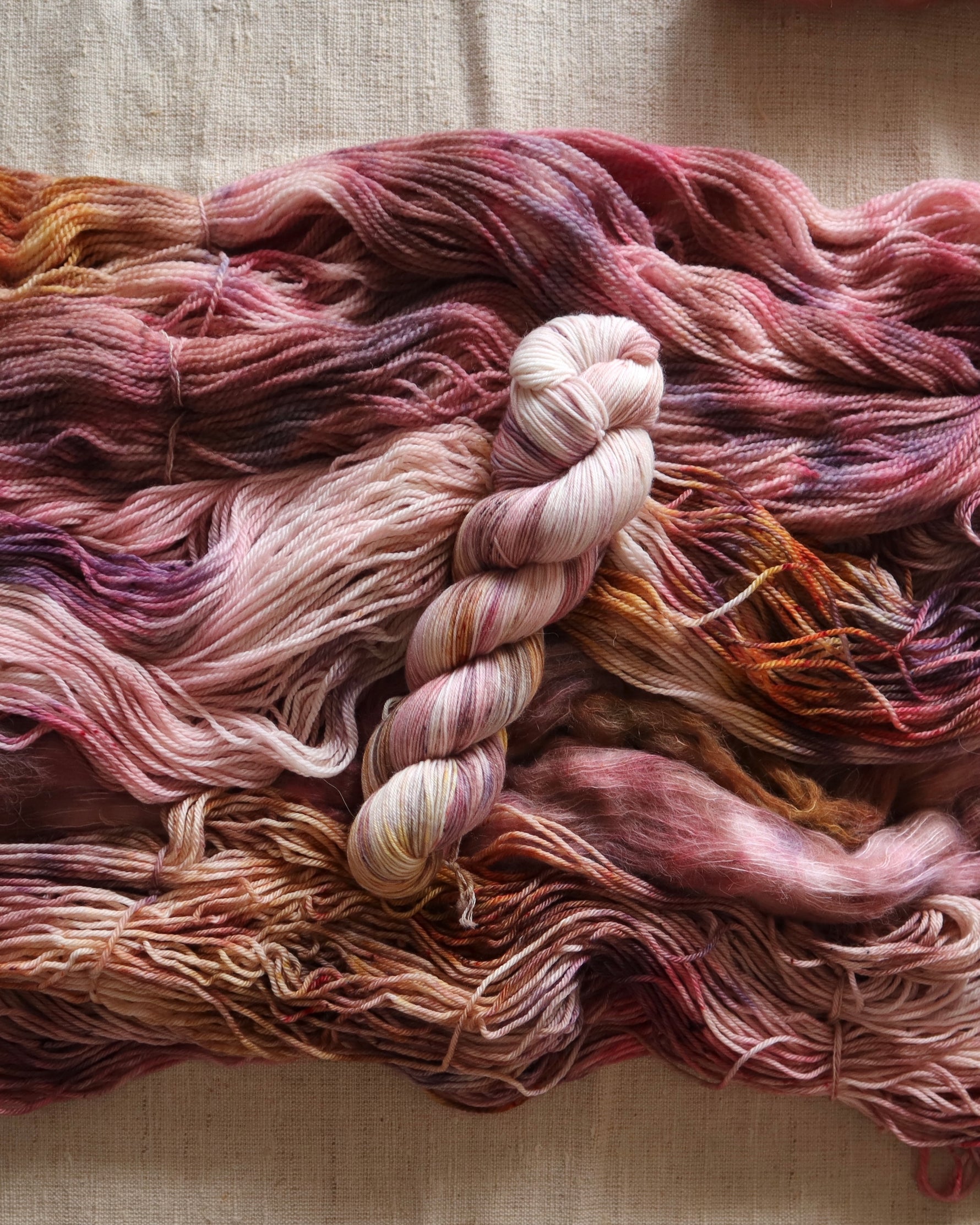 All skeins are carefully dyed with acid dye, washed and rinsed, however some bleeding may still occur. Each skein is unique and therefore colors may vary slightly from one to the next. Due to differences between monitors and screens, actual colors may also vary from what is shown. I recommend handwashing in cool water. Listing is for one skein only!